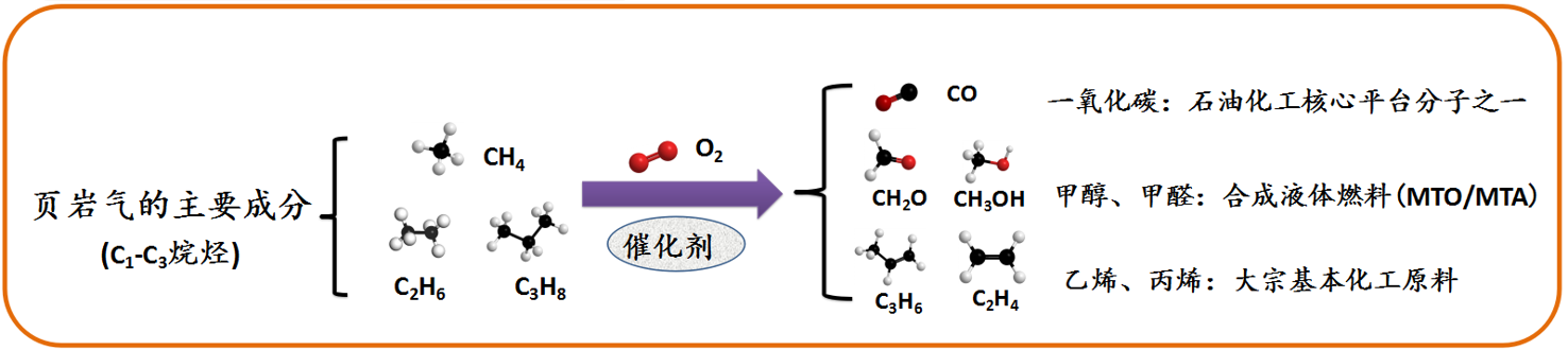甲烷、乙烷、丙烷等低碳烷烃是页岩气、油田气和炼厂气的主要成分。近期页岩气开采技术的日益成熟为下游化工行业提供了丰富而廉价得原料。开展低碳烷烃的高效催化转化制高附加值化学品具有重要的意义。该研究方向重点开展:1)甲烷选择性直接氧化制甲醛、甲醇等重要的平台分子化合物;2)C2+低碳烷烃选择性氧化制烯烃。着力于发展用于高效高选择性氧化用非金属催化剂(如二维h-BN等),深入探究其作用机理。